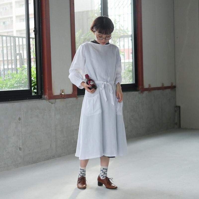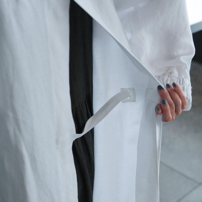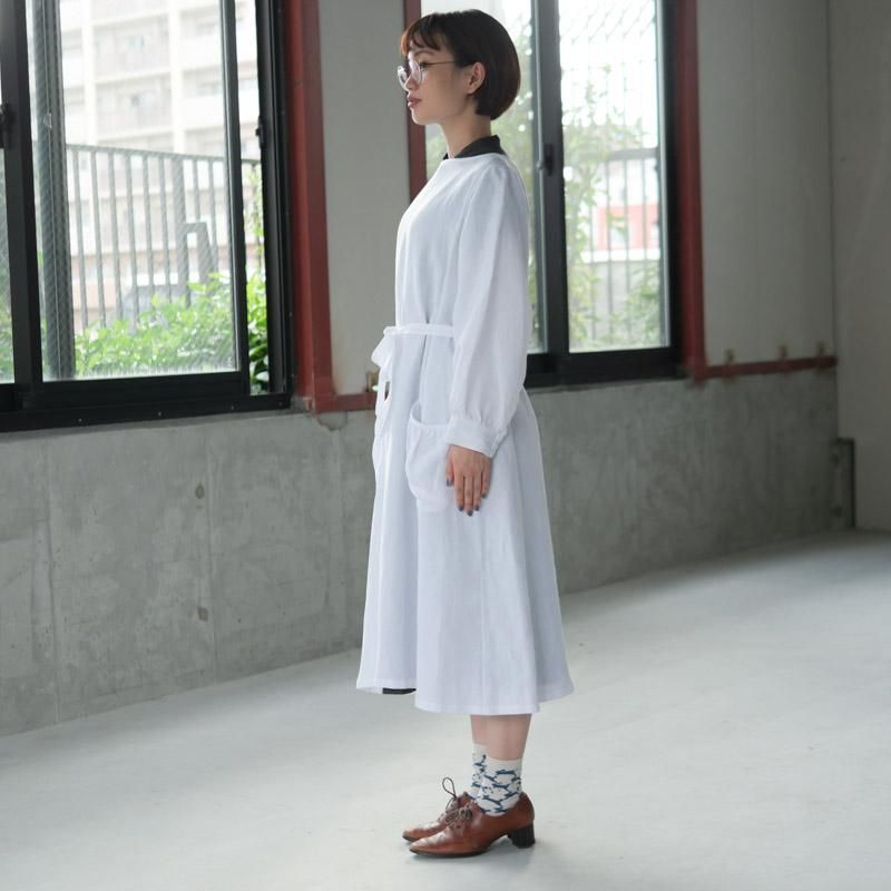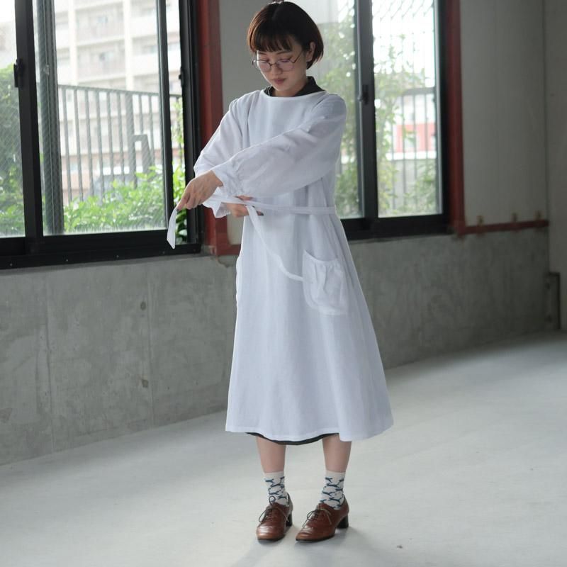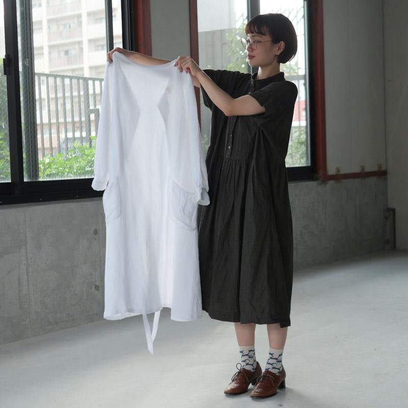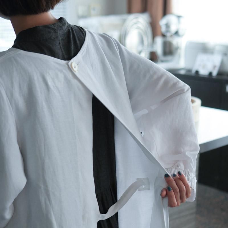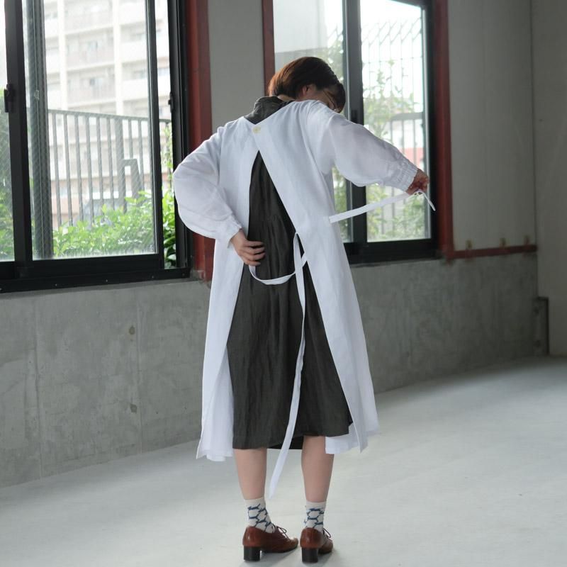エプロン No.5(shiro) 割烹着スタイルにもワンピーススタイルにもなるエプロン 【&cocochi】